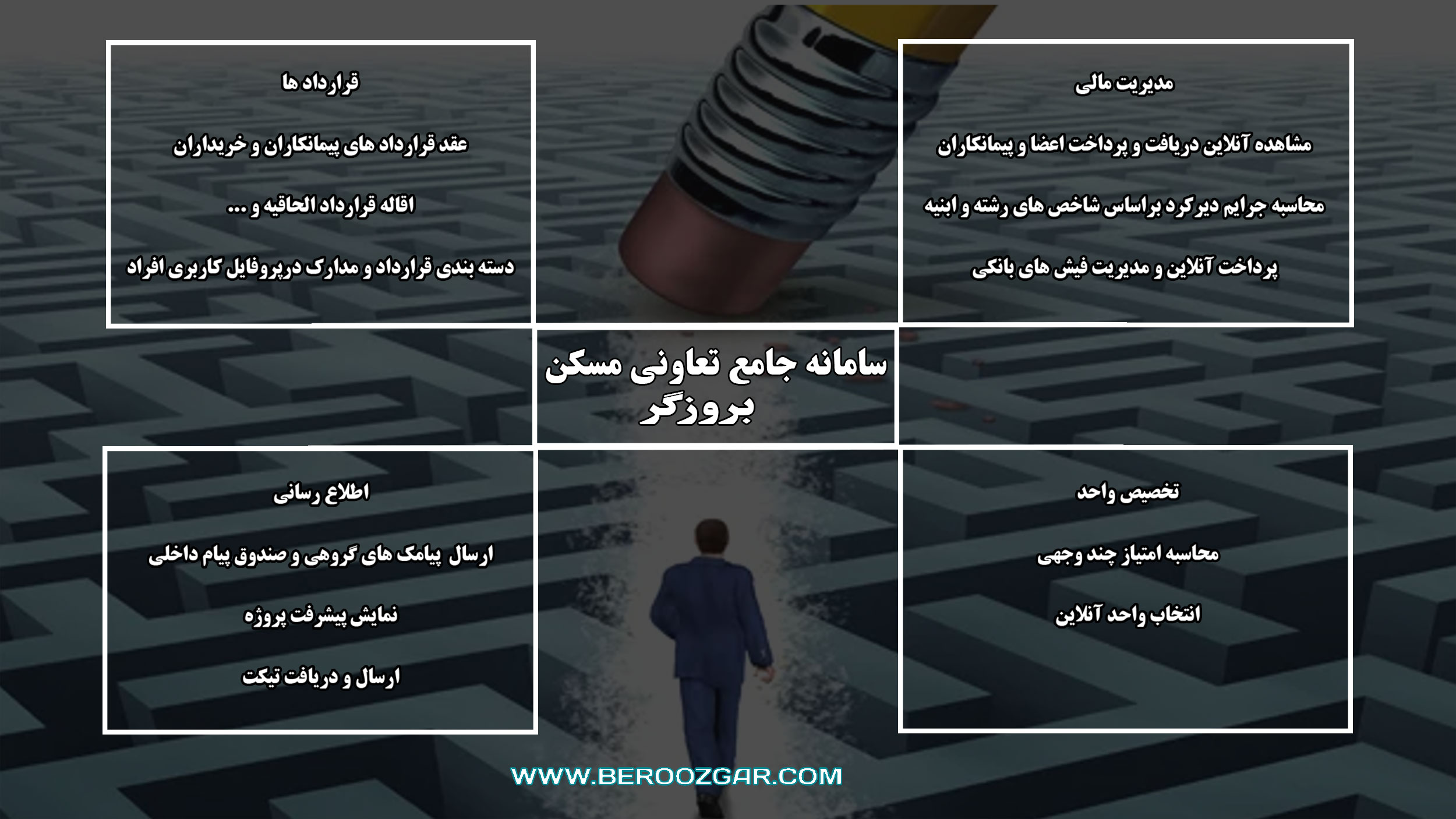 نرم افزار جامع تعاونی مسکن بروزگر چندین سال است که با شناخت صحیح فرآیند های موجود در تعاونی های مسکن بهترین و بهینه ترین راهکارها را جهت مدیریت امور و ایجاد شفافیت در این مجموعه ها ارائه نموده است .